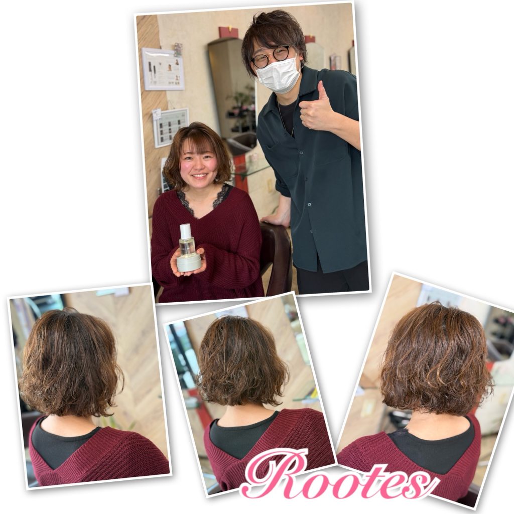ホーム > スタッフブログ > 3.23 2026/03/23 ☆Rootes☆パーマ+cut🌸楽ちんパーマゆるふわ🎵🎶happy Time🥳お花見🌸カット🎶🎵🌟スタイリング loatheoil °C-ute°C-ute🩷Mさま💞 - スタッフブログ